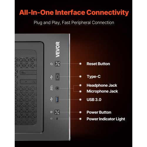 VEVOR Case per PC Compatto, 4 Ventole da 120 mm Case per Computer da Gioco con Pannello in Vetro Temperato ad Alto Flusso d'Aria, Gestione Cavi, per GPU Fino a 270 mm di Lunghezza, per ATX/M-ATX/ITX
