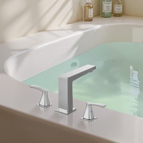 VEVOR Set di Rubinetto per Vasca da Bagno Romano, Miscelatore a 3 Fori con 2 Maniglie, Set di Rubinetti per Vasca da Bagno Montaggio sul Ponte, Beccuccio ad Angolo Retto, Argento