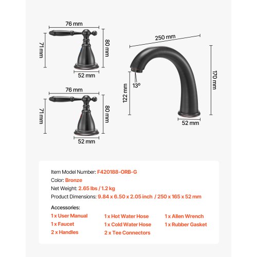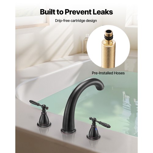 VEVOR Rubinetto per Vasca da Bagno, Set con 2 Maniglie, Miscelatore Vasca da Bagno in Acciaio Inossidabile con Beccuccio ad Arco Alto per Montaggio su Ponte per Adulti, Colore Bronzo
