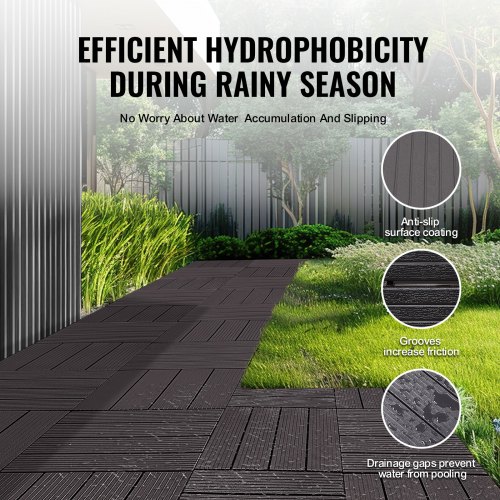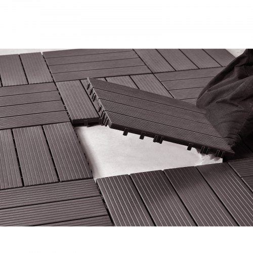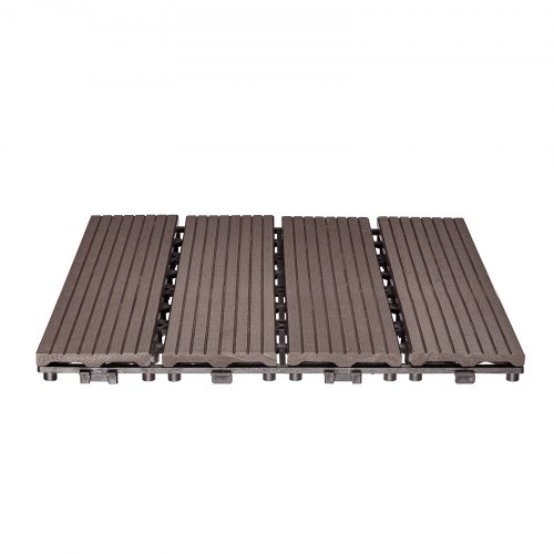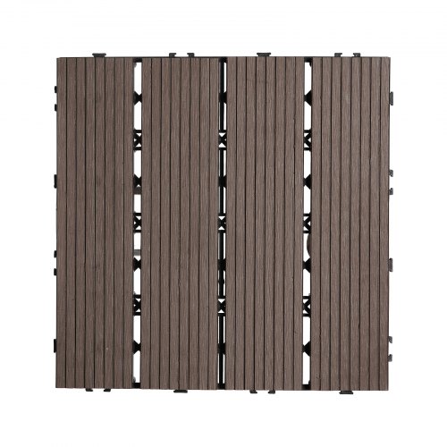 VEVOR Piastrelle per Terrazza ad Incastro in Legno Plastica, 10 Pezzi 300 x 300 x 20 mm 9,2 m², Impermeabili per Esterni Tutte Stagioni, per Portico, Bordo Piscina, Balcone, Cortile, Marrone Scuro