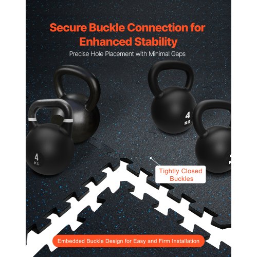 VEVOR Tappetino Puzzle ad Incastro per Palestra 6 Pezzi, Spessore 14 mm, Piastrelle in Schiuma EVA Gommata, Tappetino da Palestra 61x61 cm, Copertura 2,2 m², Tappetino da Ginnastica, Casa, Nero e Blu