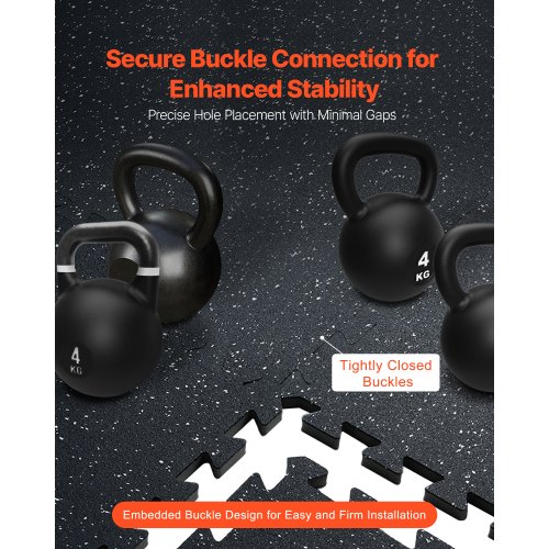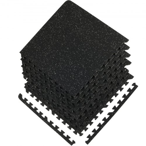 VEVOR Tappetini per Piastrelle ad Incastro da 12 pz con 24 Bordi, Piastrelle per Pavimenti Fitness in Gomma e Schiuma EVA, Area di Copertura 4,5 m² Nero e Grigio, per Palestra, Cantina, Casa, ecc.
