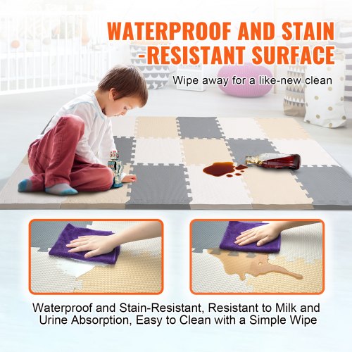 VEVOR Tappetino da Gioco per Bambini con Schiuma EVA, Tappetino da Gioco Puzzle, Tappetini Bambini Incastro per Sala Giochi, Camera, Soggiorno, 16 Pezzi 315 x 315 x 10 mm, Cammello Grigio Beige