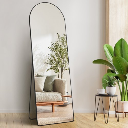 VEVOR Specchio ad Arco a Figura Intera 1650 x 558 mm Grande Specchio da Terra Appeso a Parete con Supporto Telaio in Lega di Alluminio, Specchio da Toeletta a Corpo Intero per Camera da Letto, Nero