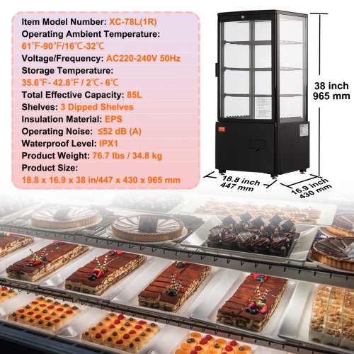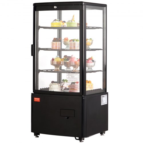 VEVOR Vetrina Refrigerata Commerciale da 85 L, Vetrina per Pasticceria a 3 Ripiani, Frigorifero con Illuminazione a LED, Raffreddamento ad Aria Senza Gelo Vetrina per Panifici Pasticcerie Commerciale