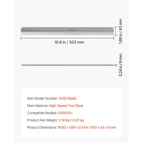 VEVOR Lama per Taglierina Carta, Lama di Ricambio in Acciaio per Impieghi Gravosi, per Taglierina Professionale G450VS+, Lama Ricambio per Macchina per Tagliare la Carta, 503 x 43 x 6 mm