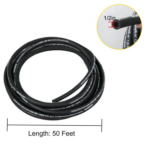 VEVOR Tubo idraulico 3/8 pollici x 50 piedi, Tubo idraulico a spirale 4800 PSI, Tubo idraulico in gomma con 2 trecce in filo di acciaio ad alta resistenza, Tubo idraulico sfuso da -20 ℃ a 140 ℃