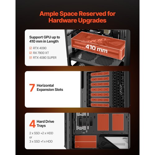 VEVOR Case per PC Compatto, Torre Completa, Case per Computer da Gioco con Pannelli ad Alto Flusso d'Aria, 3 Ventole PWM 140 mm per GPU Fino a 410 mm di Lunghezza, Compatibile con E-ATX//M-ATX/ITX