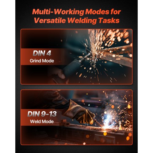 VEVOR Casco per Saldatura Auto-Oscurante, Cappuccio per Saldatura Energia Solare Colori Reali da 100 x 95 mm, 4 Sensori ad Arco, Tonalità 4/5-9/9-13 per Molatura TIG MIG ARC, Serie METIS
