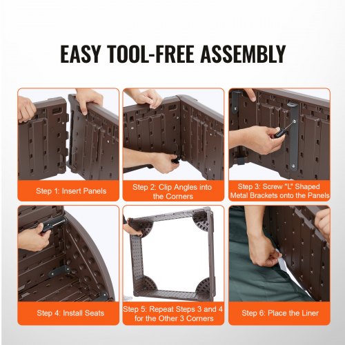 VEVOR Sabbiera con Coperchio 1235 x 1235 x 315 mm Sabbiera Quadrata in HDPE con 4 Posti ad Angolo e Rivestimento del Fondo, Sabbiera per Bambini 3-12 Anni per Cortile all'Aperto, Spiaggia, Marrone