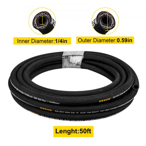 VEVOR Tubo idraulico 1/4 pollici x 50 piedi, Tubo idraulico a spirale 5800 PSI, Tubo idraulico in gomma con 2 trecce in filo di acciaio ad alta resistenza, Tubo idraulico sfuso da -20 ° C a 140 ° C
