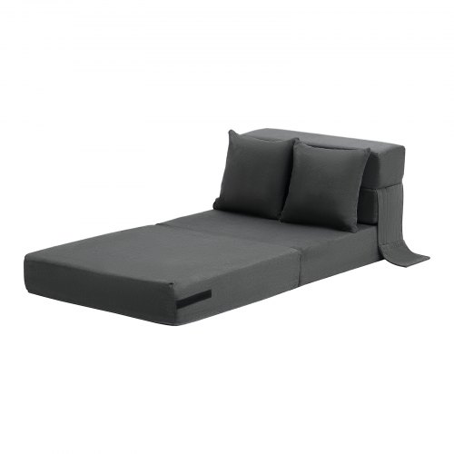 VEVOR Divano Letto Pieghevole con 2 Cuscini e Fodera Lavabile, Poltrona Letto Trasformabile in Memory Foam ad Alta Densità 25D, Divano Futon per Soggiorno, 1860 x 730 x 150 mm, Grigio Scuro Singolo