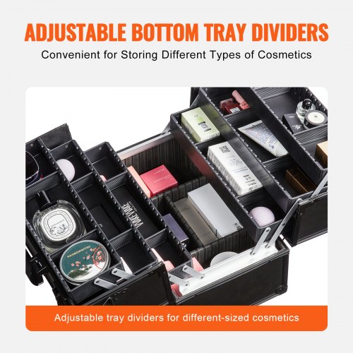 VEVOR Valigetta per Trucco con Ruote 3 Livelli, Valigia Portatile da Viaggio con Manici Tracolla per Estetista Parrucchiere, Scatola Borsa per Trucco Professionale Tessuto in Oxford Impermeabile Nero