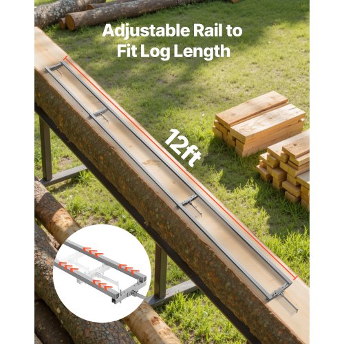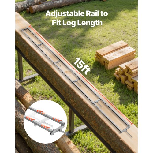 VEVOR Sistema di Guida per Segheria, Kit Binario per Segheria con Barra Trasversale Lunghezza 4,57 m, Sistema di Binario in Alluminio per Motoseghe, 4 Cunei, Kit Guida Regolabile da Falegnami