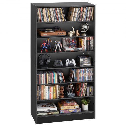 VEVOR Mobiletto Armadietto 7 Scomparti Porta DVD CD Libri Giochi Multimediale 70 x 30 x 140 cm, Armadio Autoportante Salvaspazio per CD DVD Dischi di Giochi per Ufficio Studio Soggiorno Casa, Nero