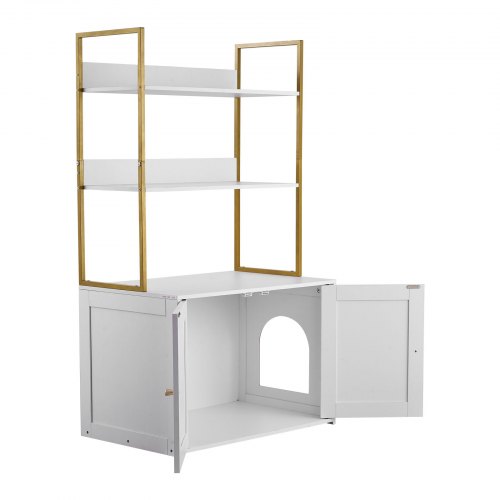 VEVOR Mobile per Lettiera per Gatti, Mobiletto per Lettiera Nascosta da 70 cm con Gambe in Metallo e Ripiani a 2 Livelli, Toilette Impermeabile per Gatti, per Camera da Letto e Soggiorno