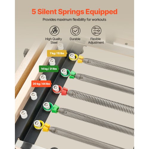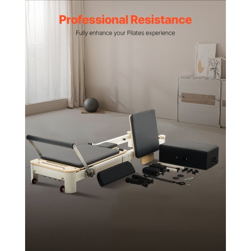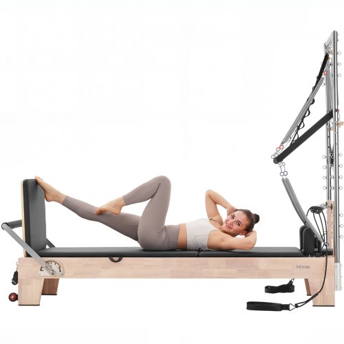 VEVOR Macchina per Pilates Riformatore Attrezzatura in Legno per Esercizi da Palestra Allenamento Domestico, Panca Letto per Pilates con Doppia Resistenza Molla Corda, Carico max. 181,44 kg