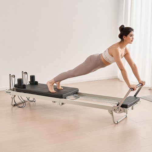 VEVOR Riformatore Pilates Pieghevole, Macchina per Allenamento Pilates per Palestra Casa, Letto Pilates con Doppia Resistenza Molla e Corda, per Utenti Avanzati Principianti, Fino a 181,4 kg