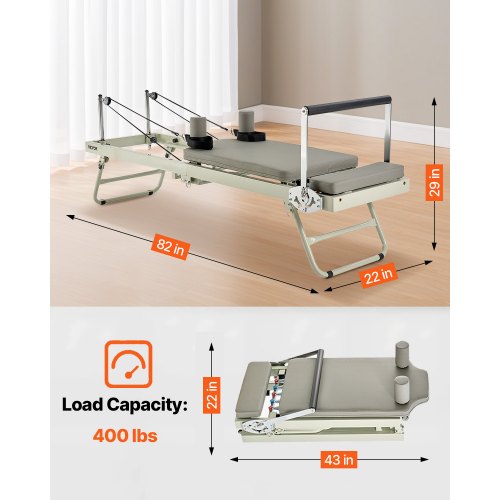 VEVOR Macchina Pieghevole per Riformatore per Pilates, Letto con Seduto Scatola, per Casa Palestra Utenti Avanzati Principianti con Doppia Resistenza Molla e Corda, 2215 x 700 x 830 mm