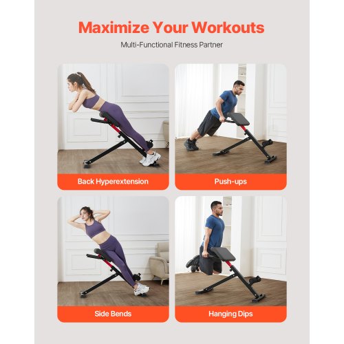 VEVOR Panca Iperestensione Sedia Romana, Macchina di Estensione 136 kg, Attrezzatura per Glutei, Muscoli Posteriori della Coscia, Parte Addominale, Panca per Allenamento Schiena Palestra Domestica