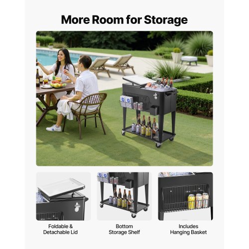 VEVOR Carrello Portaghiaccio, da 75,71 Lcon Ruote, Maniglia Telescopica a 2 Stadi e 2 Ruote Girevoli, Tavolo Portatile per Spiaggia, Patio, Bar, Carrello da Parco all'Aperto su Ruote, Nero