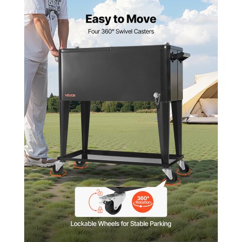 VEVOR Ghiacciaia Mobile da 75,71 L, Può Contenere Fino a 50 Bottiglie/110 Lattine, Carrello Portatile per Bevande da Bar per Feste, Contenitore per Bevande con Cestino Laterale e Apribottiglie, Nero