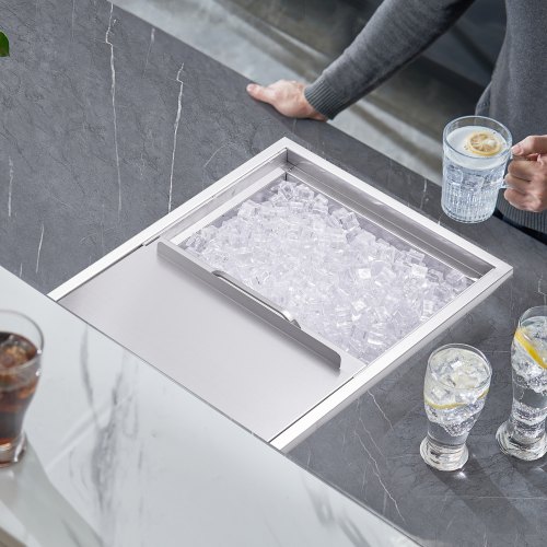 VEVOR Vaschetta per Ghiaccio da Incasso Capienza max. 30,25L circa Dimensioni 508x355x308mm, Ghiacciaia da Incasso con Coperchio in Acciaio Inox Conservazione di Cubetti di Ghiaccio da Bar Feste Hotel