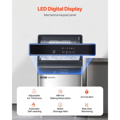 VEVOR Distributore di Ghiaccio Contenitore per Ghiaccio Capacità max. 80 kg ca., Erogazione Automatica del Ghiaccio da 9 kg/min con Tritaghiaccio, Piedini Regolabili in Altezza, per Hotel, Hotel