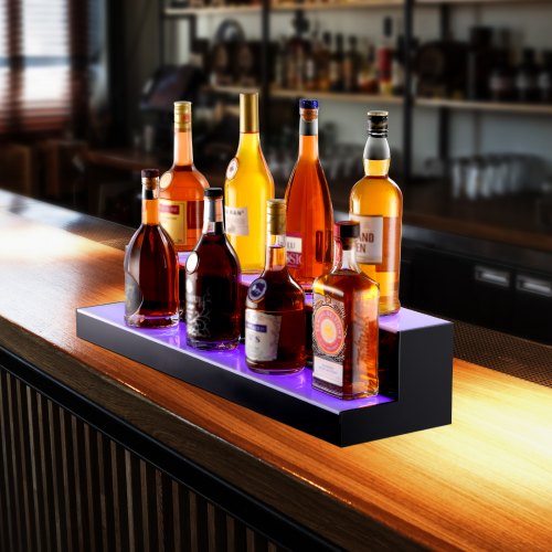 VEVOR Scaffale per Vino da Bar, Scaffale da Bar Illuminato a LED Telecomando RF Controllo APP, Scaffale Illuminazione per Bevande in Acrilico 2 Ripiani, Mensola per Bottiglia di Vino 405x200x114mm