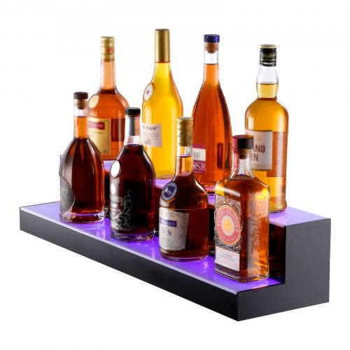 VEVOR Scaffale Portabottiglie di Vino da Bar, Scaffale da Bar Illuminato a LED Telecomando RF Controllo APP, Scaffale Illuminazione per Bevande in Acrilico 2 Ripiani, Portabottiglie 600 x 200 x 150mm