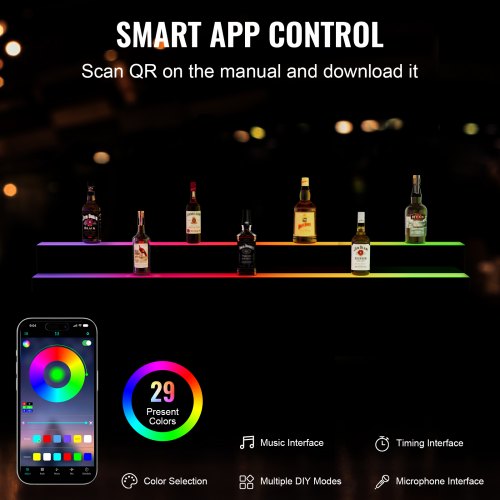 VEVOR Mensola per Mostrare Vino da Bar Pannello Illuminato LED Telecomando RF Controllo APP, Ripiano per Illuminazione per Bevande in Acrilico, Portabottiglie da Parete/Tavolo 1016x114x32mm