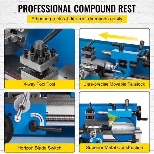 VEVOR Mini Tornio 550 W in Metallo da Banco Velocità Regolabile con 3 Griffe, Mini Macchina di Tornio da Tavolo per Lavorazione di Modello 77 x 21,7 x 29,7cm, Tornio per Metallo con Graffe