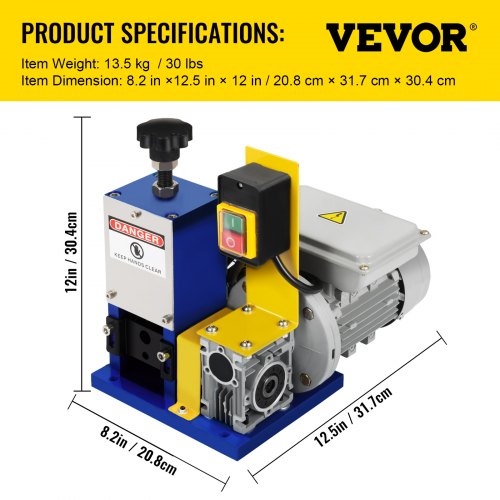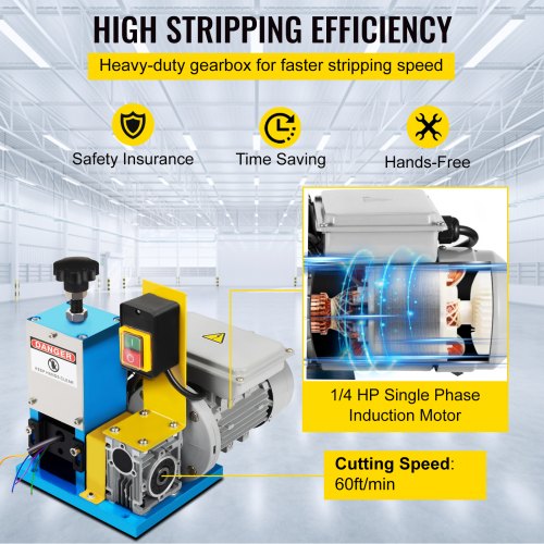 VEVOR Macchina Spellacavi Elettrica Professionale Singola Fase, 220 V 20 piedi/min Potenza 1/4 HP 180 W Spelacavi Portatile per Il Riciclaggio del Rame per Rimuovere L'Isolamento in Plastica e Gomma.