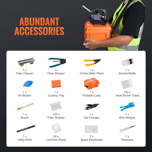 VEVOR Giuntatrice a Fusione di Fibra 6 Motori con Allineamento del Nucleo, Giunzione 6s e Riscaldamento 13s, Macchina Giuntatrice per Fibra con LCD Screen 12,7 cm, Batteria 7800 mAh per SM MM DS NZDS