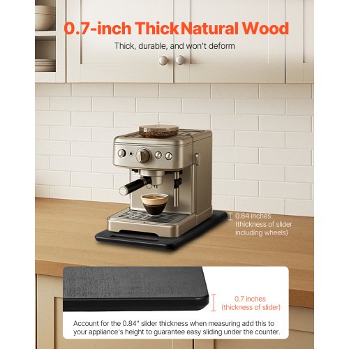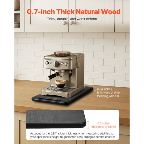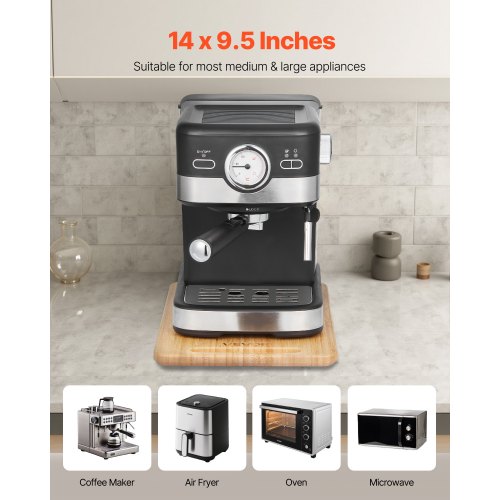VEVOR Vassoio Scorrevole per Elettrodomestici in Legno, ca. 356 x 241 mm con Ruote in Gomma, Carico max. 18 kg, Vassoio Scorrevole per Macchina da Caffè Miscelatore da Cucina, Colore Legno