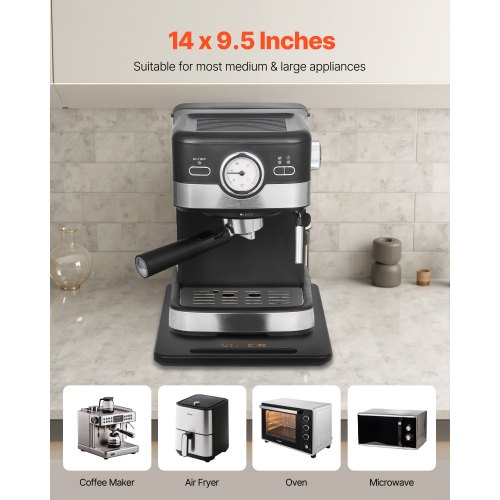 VEVOR Vassoio Scorrevole per Elettrodomestici in Legno, ca. 356 x 241 mm con Ruote in Gomma, Carico max. 18 kg, Vassoio Scorrevole per Macchina da Caffè Miscelatore da Cucina, Piano di Lavoro, Nero