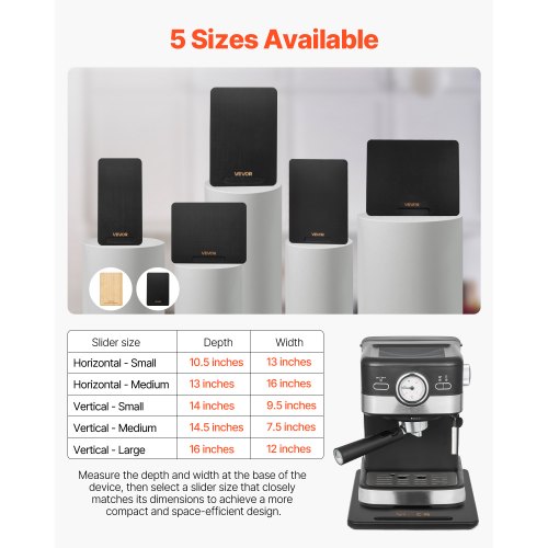 VEVOR Vassoio Scorrevole per Elettrodomestici in Legno, 26,7 x 33 cm con Ruote in Gomma, Facile da Pulire, Vassoio Scorrevole per Macchina da Caffè Miscelatore da Cucina, Piano di Lavoro, Nero