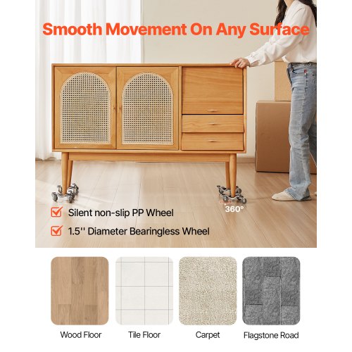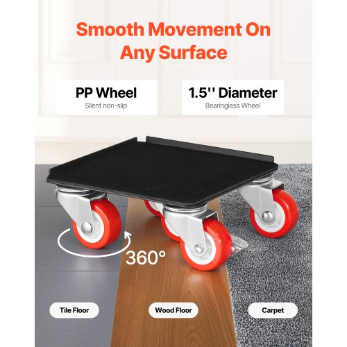 VEVOR Carrello per Mobili, Carico Massimo 1575 kg, Trasportatore per Mobili Impieghi Gravosi con 5 Ruote Girevoli 360°, Pannello in Acciaio al Carbonio, Set Utensili Scorrevoli per Sollevamento Mobili