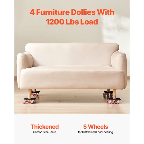 VEVOR Carrello per Mobili, Carico Massimo 544 kg, Trasportatore per Mobili Impieghi Gravosi con 5 Ruote Girevoli 360°, Pannello in Acciaio al Carbonio, Set Utensili Scorrevoli per Sollevamento Mobili