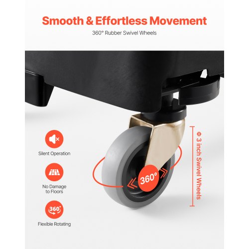VEVOR Carrello per Bidoni della Spazzatura, con 4 Ruote Bloccabili, Capacità di Peso di 227 kg, Base a Rulli Rotonda, Carrello per Barili per Impieghi Gravosi 455 x 155 mm Colore Nero