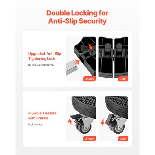 VEVOR Pattini a Rotelle per Trasporto di Carichi Pesanti Capacità Carico Max. 3 Tonnellate, Pattini in Acciaio al Carbonio Piattaforma Antiscivolo Rotazione da 360° con Maniglia da Magazzino Officina