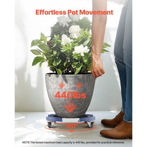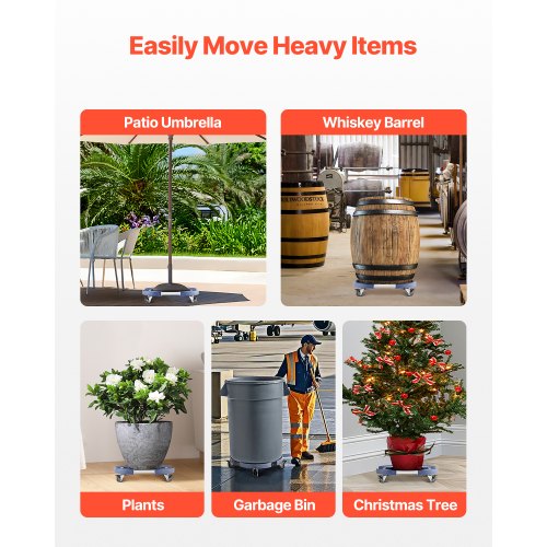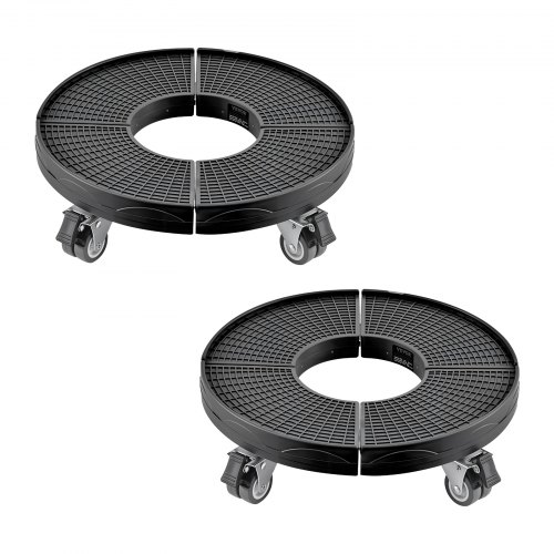 VEVOR Carrello per Bidoni della Spazzatura, con 4 Ruote Bloccabili, Capacità 181,4 kg, Base a Rulli Rotonda, Regolabile 380-580 mm, Carrello Piante a Tamburo per Impieghi Gravosi Nero 2 Pezzi