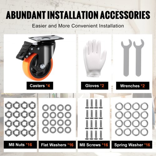 VEVOR Set di Ruote per Banchi di Lavoro 4 Pezzi con Freno a Pedale Capacità Carico Max. 74,8kg, Ruote Girevoli da 4 Pz per Banco di Lavoro Mobili Attrezzatura Industriale Ruote di Ricambio con Freno
