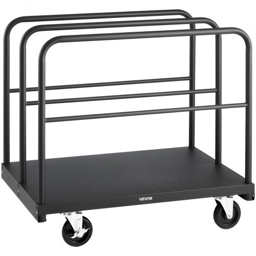 VEVOR Carrello per Cartongesso, Carico 816 kg, Carrello per Pannelli in Acciaio con Ruote Girevoli da 12,5 mm, con Piattaforma da 91,4 x 61 cm con 3 Corrimano Laterali per Fabbrica, Garage, Nero
