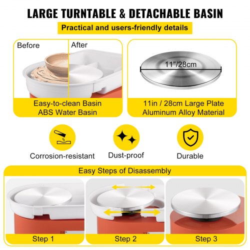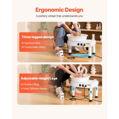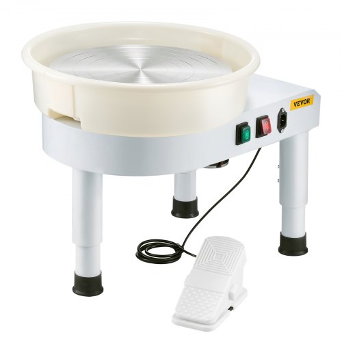 VEVOR Kit 16 Pz Macchina per Argilla Ceramica, 11 Pollici Potenza 350 W GCJX-008 Macchina per Ruote da Ceramica Pedale Bianca per L'Insegnamento Scolastico, studi di Ceramiche e Uso Domestico, ecc