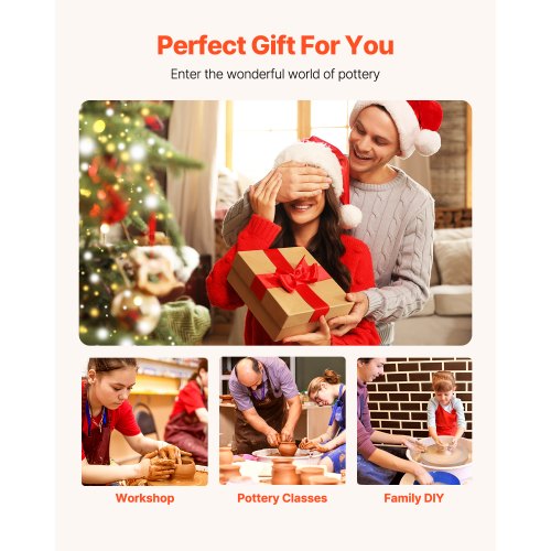 VEVOR Kit 16 Pz Macchina per Argilla Ceramica, 14 Pollici Potenza 450 W GCJX-008 Macchina per Ruote da Ceramica Pedale Bianca per L'Insegnamento Scolastico, studi di Ceramiche e Uso Domestico, ecc