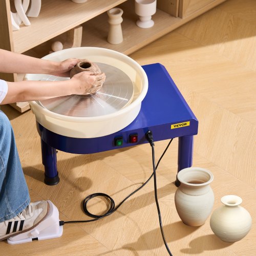 VEVOR Kit 16 Pz Macchina per Argilla Ceramica, 14 Pollici Potenza 450 W 220 V GCJX-008 Macchina per Ruote da Ceramica Pedale Blu per L'Insegnamento Scolastico, studi di Ceramiche e Uso Domestico, ecc