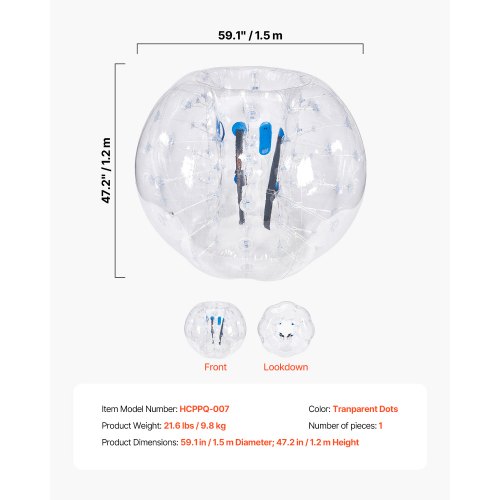 VEVOR Palla Gonfiabile per Urti Palla Antiurto per Paraurti 1 Pezzo 1.2m x 1.03m Palla di Collisione Umana Palla di Rimbalzo a Bolle di Corpo in PVC per Attività all'Aria Aperta Trasparente Punti Blu