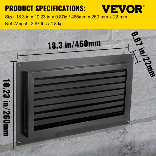 VEVOR Sfiato d'Inondazione con Piastra Posteriore e la Piastra a Persiana, Sfiato Bidirezionale a Parete in Acciaio Zincato da Protezione contro Inondazione, Apertura di Sfiato 8" x 16" a Colore Nero