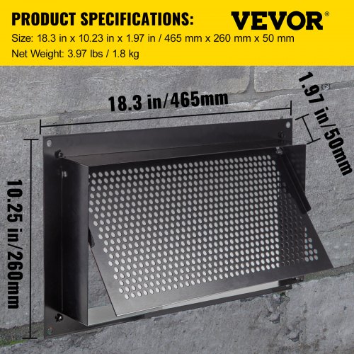 VEVOR Sfiato Bidirezionale a Parete da Protezione contro Inondazione 8" x 16", Sfiato dell'Inondazione del Vespaio in Acciaio Zincato con Piastra Posteriore, Sfiato contro Alluvione a Colore Nero